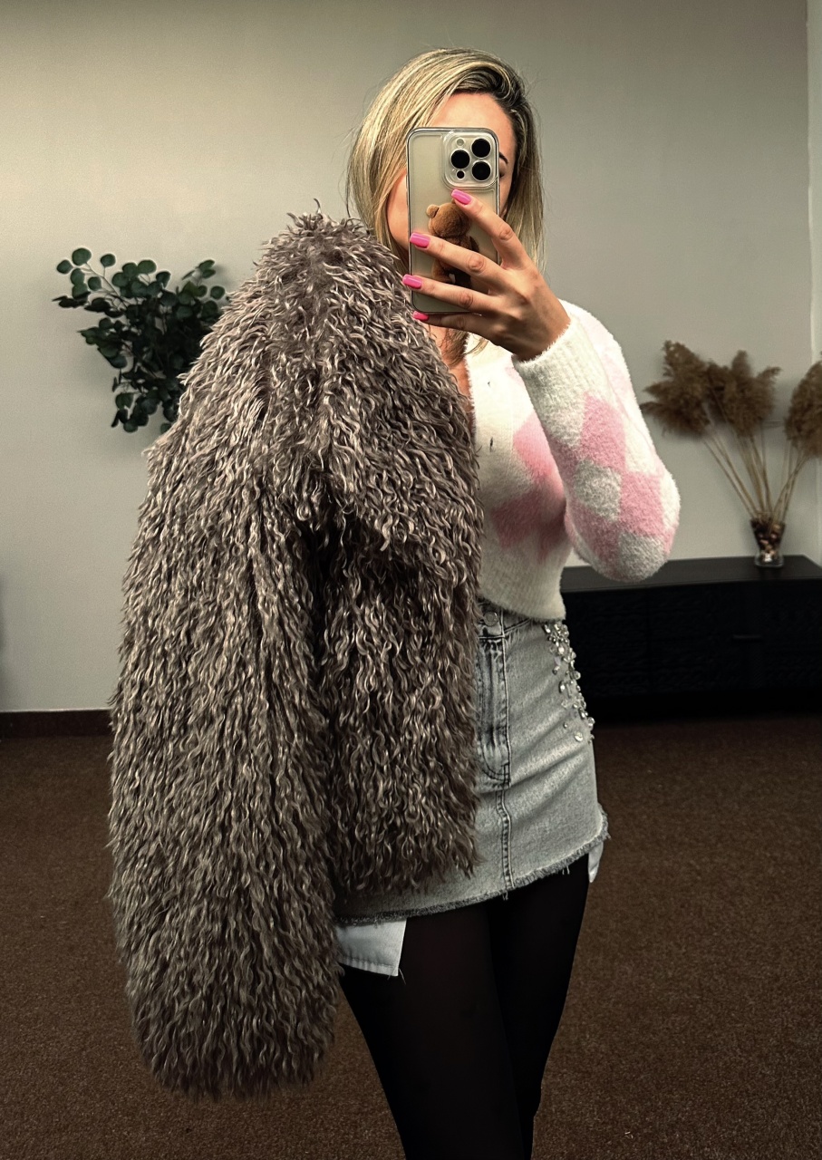 Alessi BLĂNIȚĂ PUFOSĂ CENUȘIE CU GULER LARG ALESSI