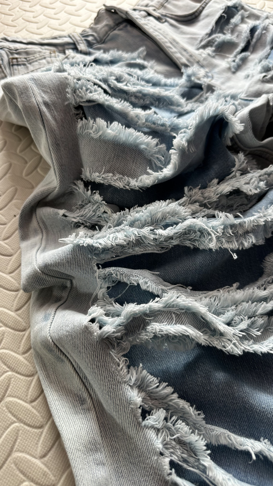Dacă îți dorești o pereche de blugi statement care să atragă toate privirile, acești blugi oversize cu rupturi sunt exact ce cauți.