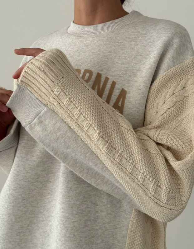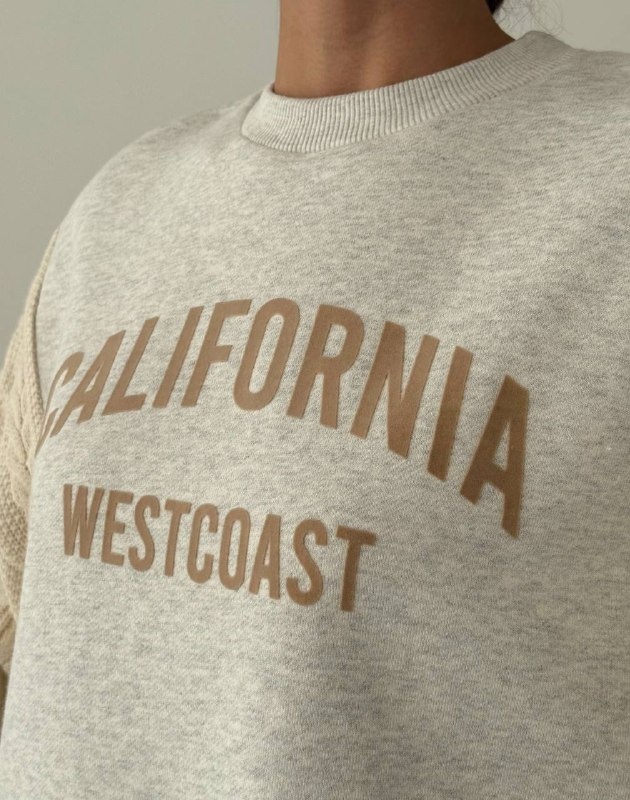 Confort și stil într-un singur item must-have! Bluză oversized în tonuri de gri deschis cu mâneci tricotate bej și imprimeu „California Westcoast” în nuanță caldă. Ideală pentru zile casual, plimbări urbane sau un look lejer cu atitudine cool.