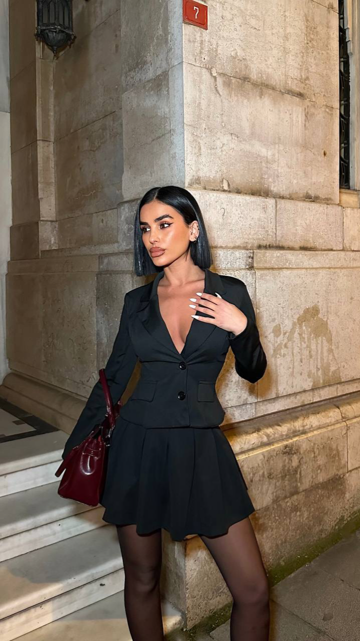 Un set care îți scoate personalitatea în evidență! Îl port ori de câte ori vreau să mă simt super încrezătoare. E genul de compleu care merge și cu adidași, și cu stilettos.