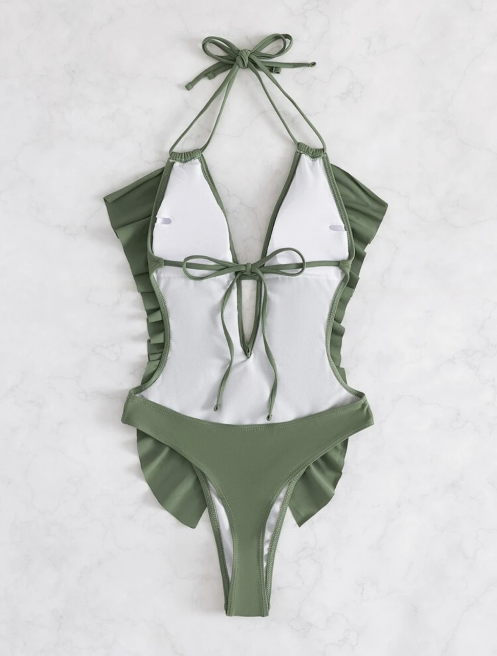 Costumul de baie Otilia este alegerea perfectă pentru un look feminin și rafinat la piscină sau pe plajă. Designul cu volane adaugă un plus de stil și delicatețe siluetei tale.