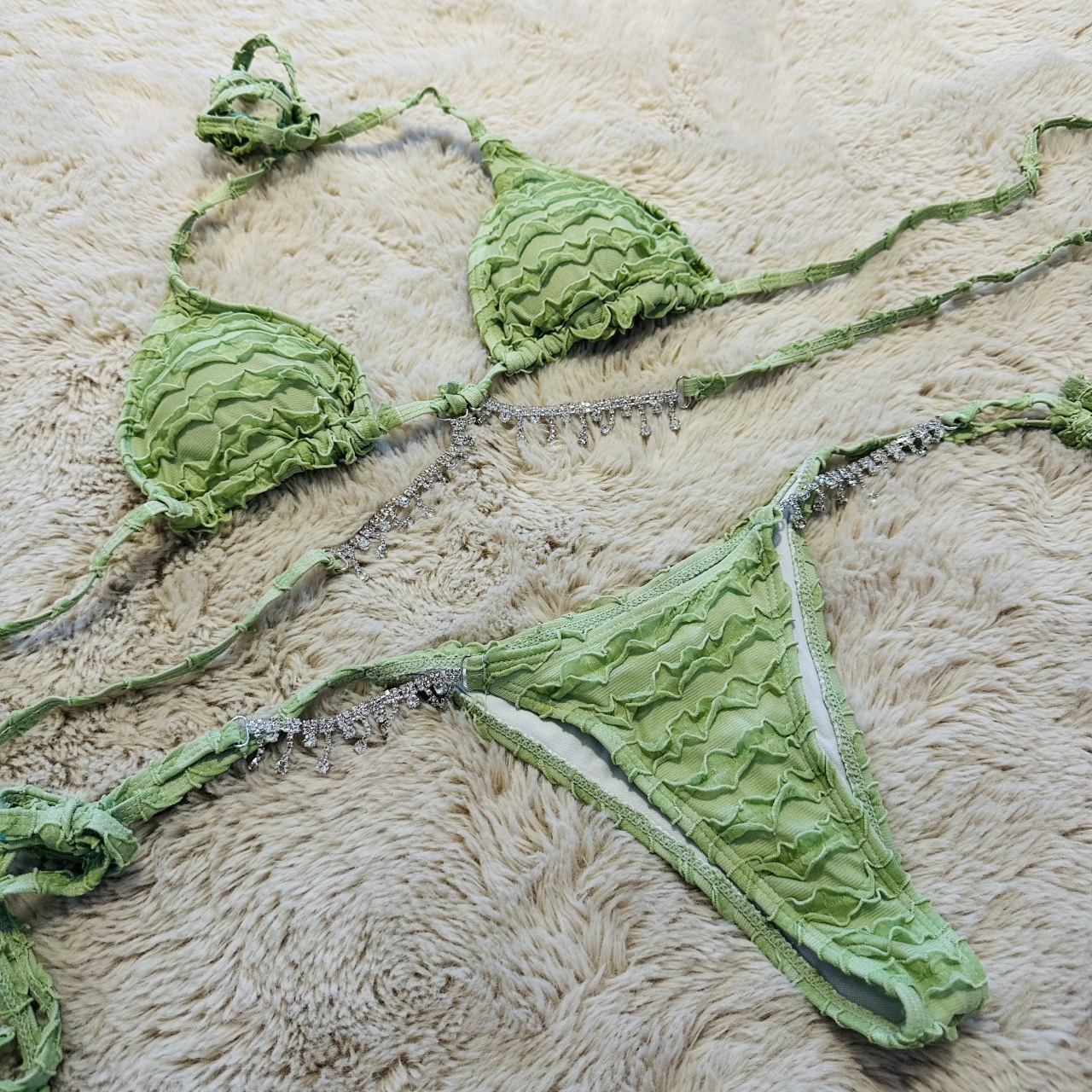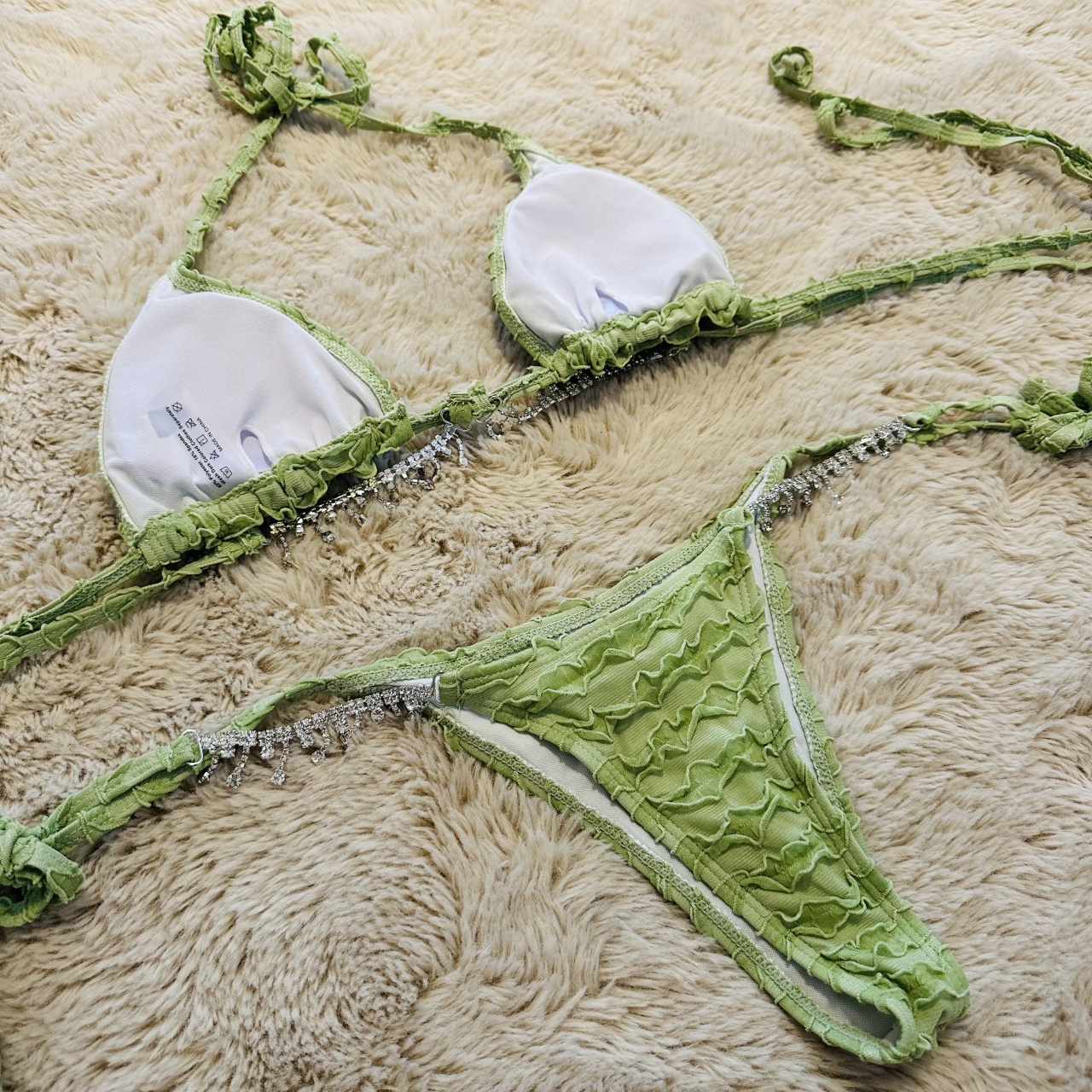 Atrage toate privirile pe plajă cu noul costum de baie Casia – feminin, rafinat și plin de personalitate! Designul cu volane și detalii strălucitoare îți oferă un look spectaculos.