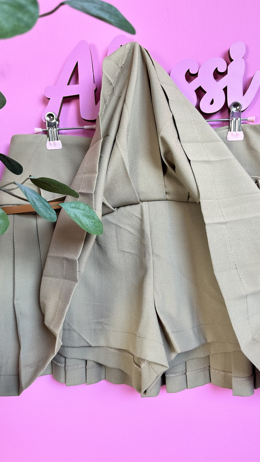 „Camel Vibes” este mixul ideal între feminitate și confort. O fustă scurtă cu pliuri stylish, dar și pantaloni ascunși pentru libertate totală de mișcare. Vine cu o curea subțire inclusă, care accentuează talia într-un mod elegant. Perfectă pentru zile în care vrei să arăți wow fără compromisuri!
