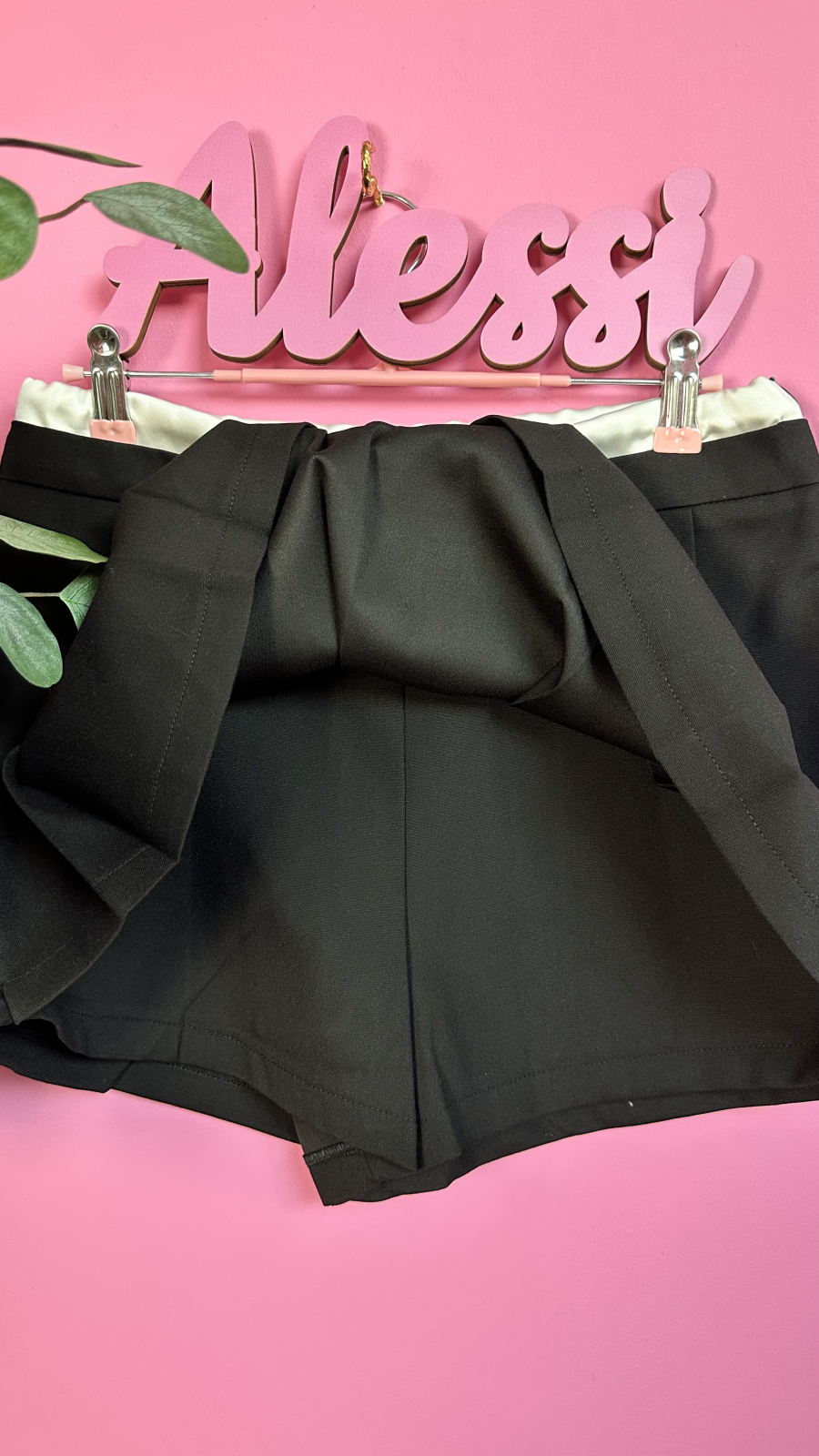 „Hidden Game” e piesa care combină perfect vibe-ul cool al pantalonilor scurți cu feminitatea unei fuste smart-casual. Cu un design tip wrap în față și croială de pantaloni dedesubt, te face să te simți liberă și stylish în același timp.