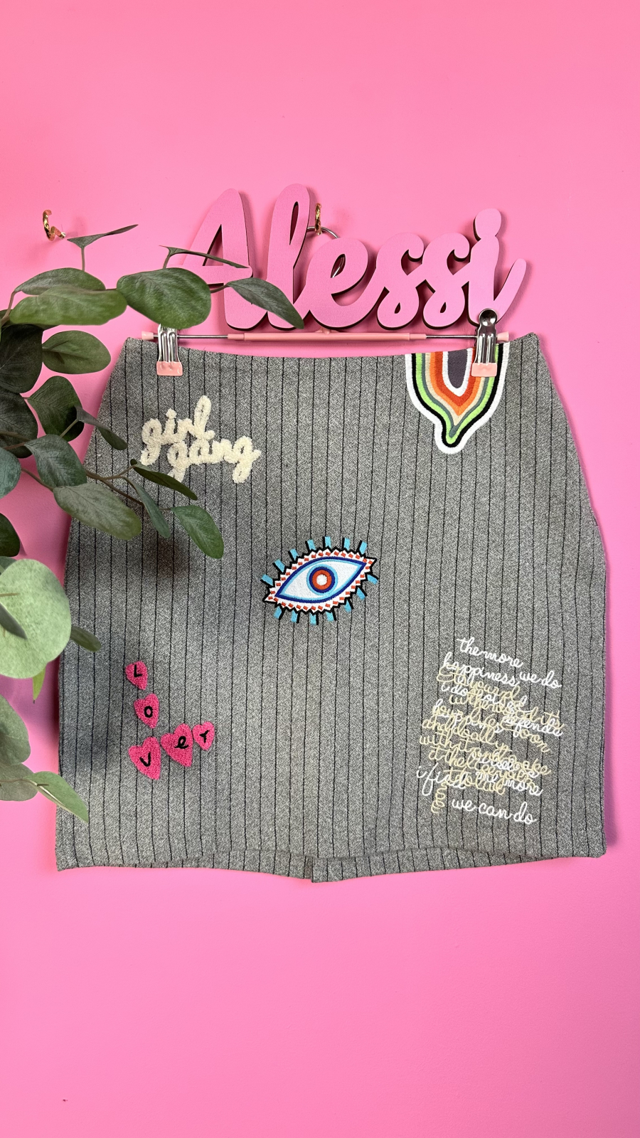 Cu un vibe artistic și un aer rebel, „Mystic Mood” e fusta care spune povestea ta fără cuvinte. Broderiile cool – de la inimi roz și ochiul protector, la mesaje scrise – transformă această piesă într-o declarație de stil.