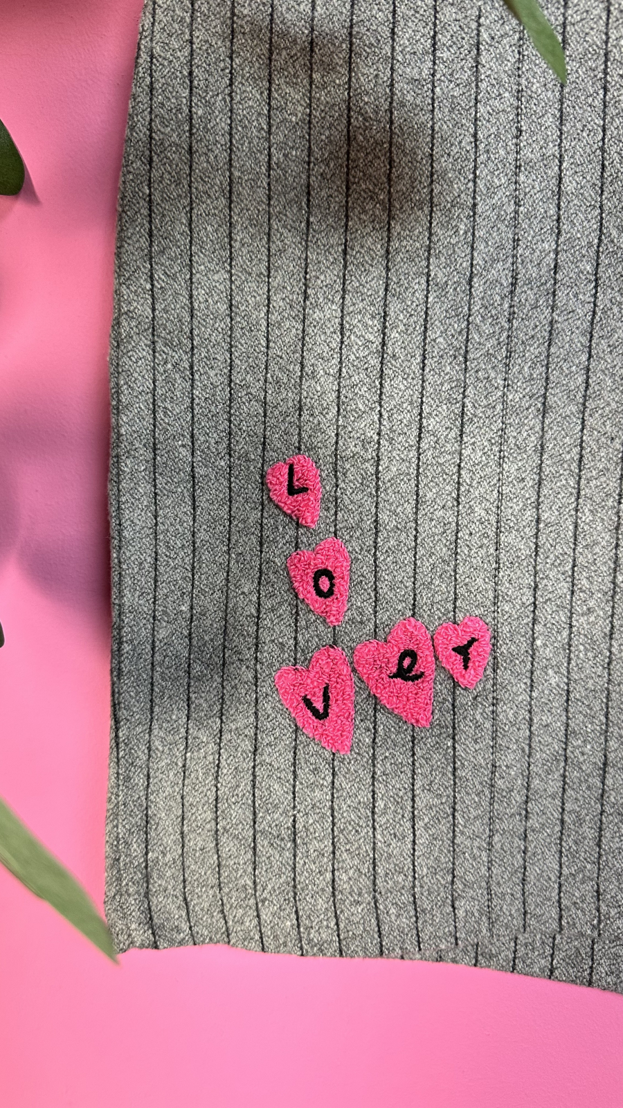 • Aplicații brodate: inimioare, „lover”, ochi stilizat, mesaje scrise