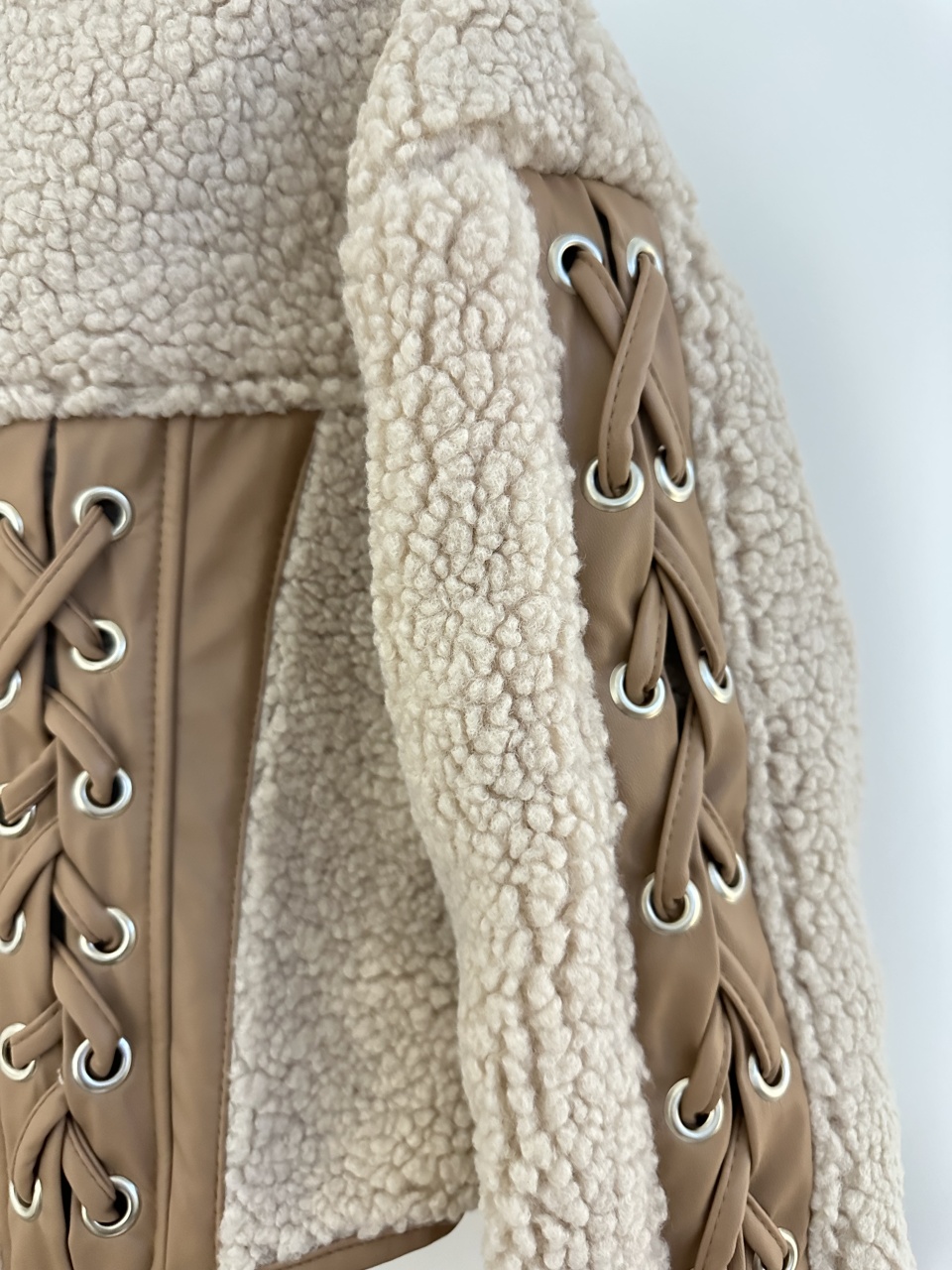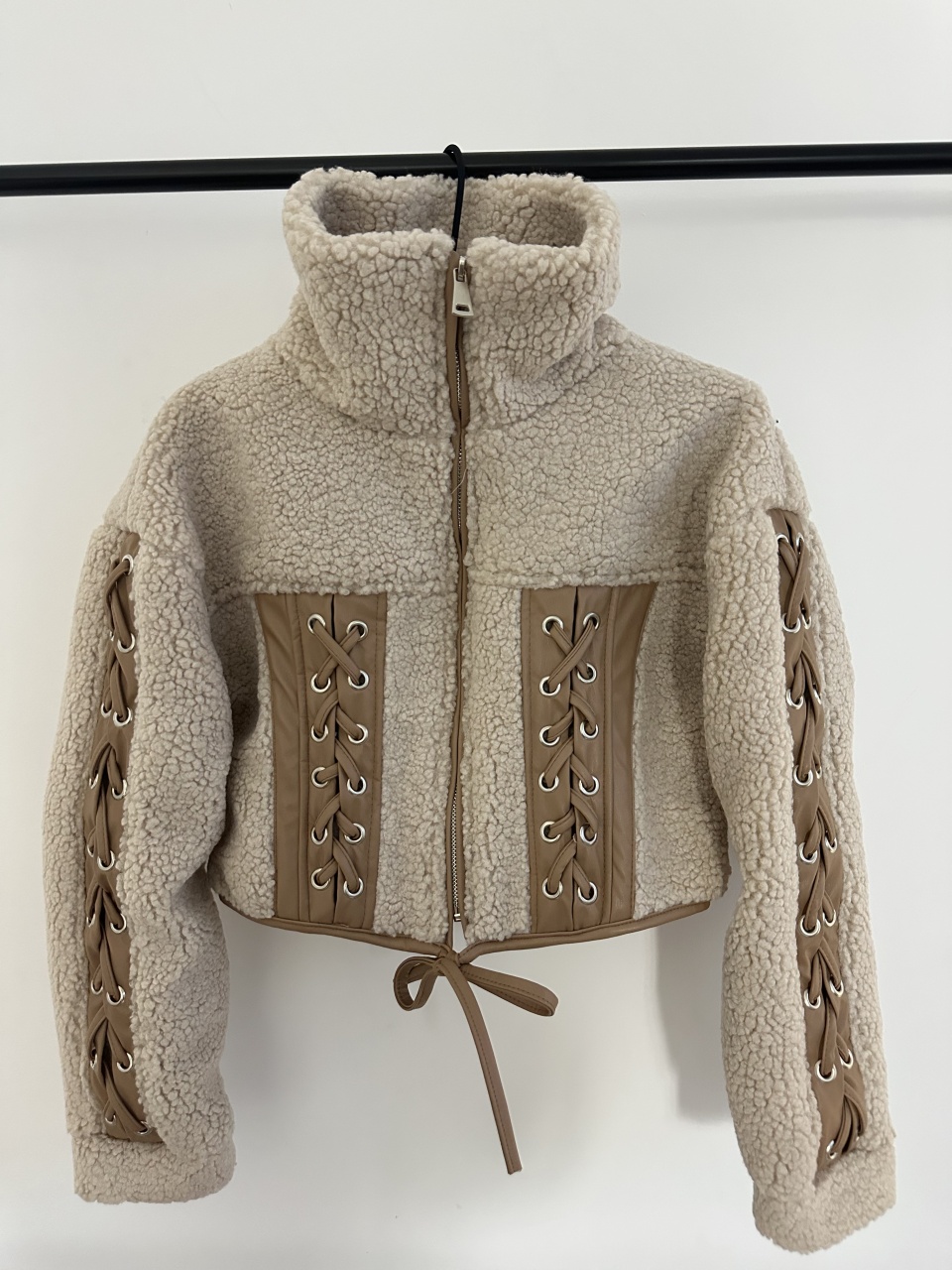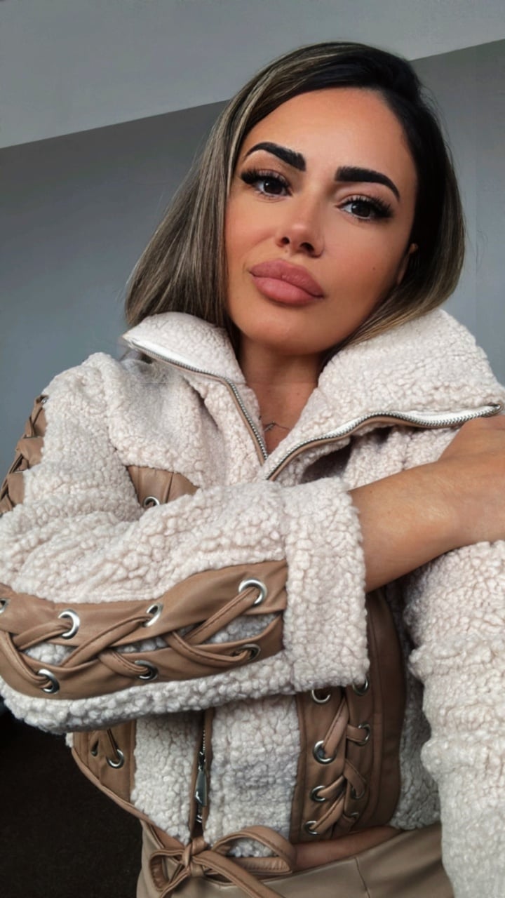 Adaugă o notă de rafinament garderobei tale de iarnă cu acest cojocel scurt bej, îmbogățit cu detalii sofisticate din piele ecologică maro. Designul său modern, cu inserții tip corset și șnur decorativ, este ideal pentru apariții elegante, dar cool. Interiorul moale și călduros îl face perfect pentru sezonul rece, oferindu-ți tot confortul de care ai nevoie fără a compromite stilul.