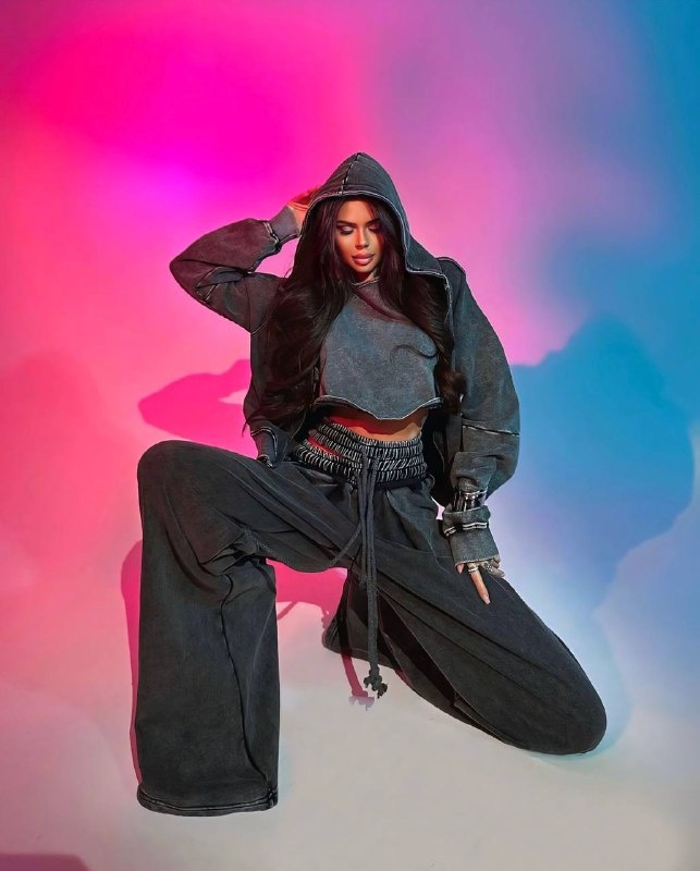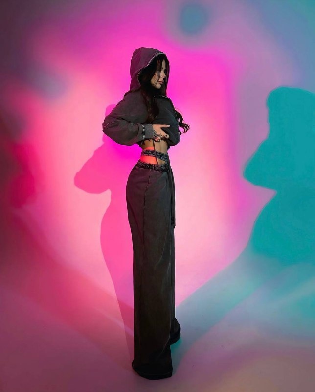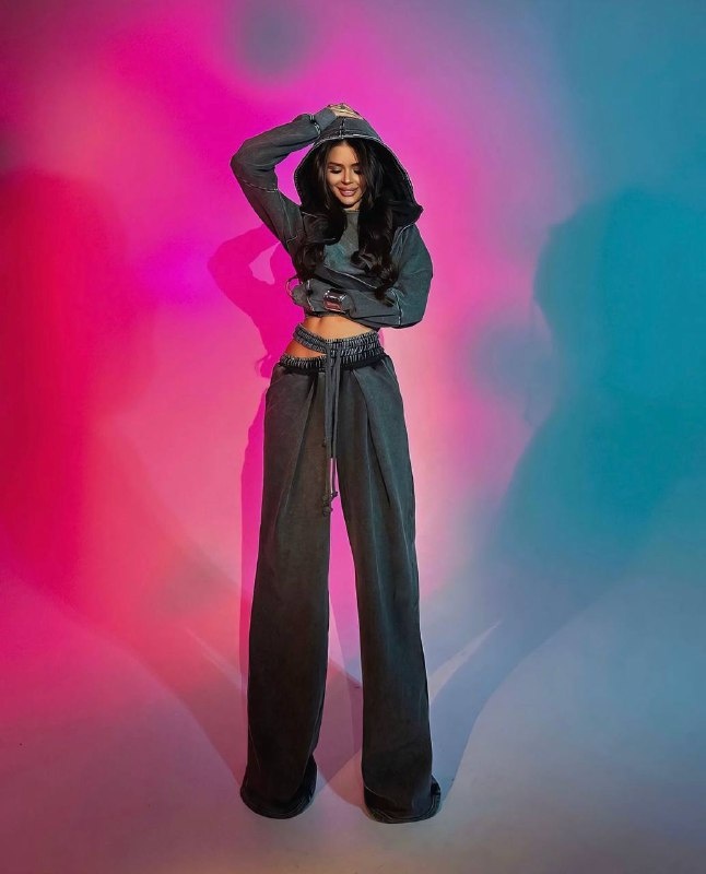 • Set format din: hanorac oversized cu glugă, crop top și pantaloni largi